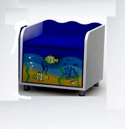 Тумба выполнена в морской тематике. Ручки из оргстекла с наклейкой.